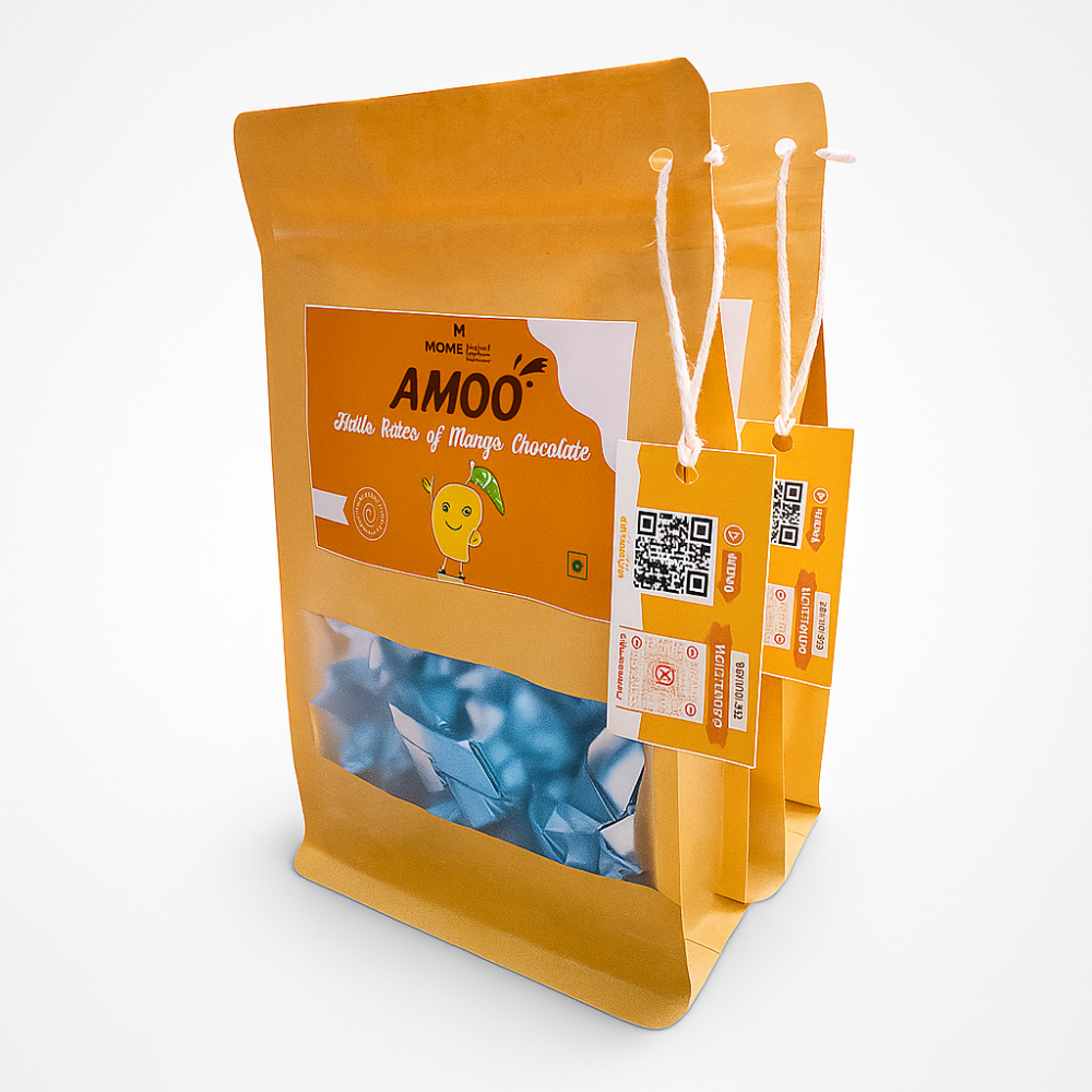 Packaged with care, each pouch contains 20 mini chocolates individually wrapped in shiny blue foil to lock in freshness and flavor. Handcrafted with love and certified by FSSAI, Amoo offers a unique sweet treat that’s both fun and flavorful.