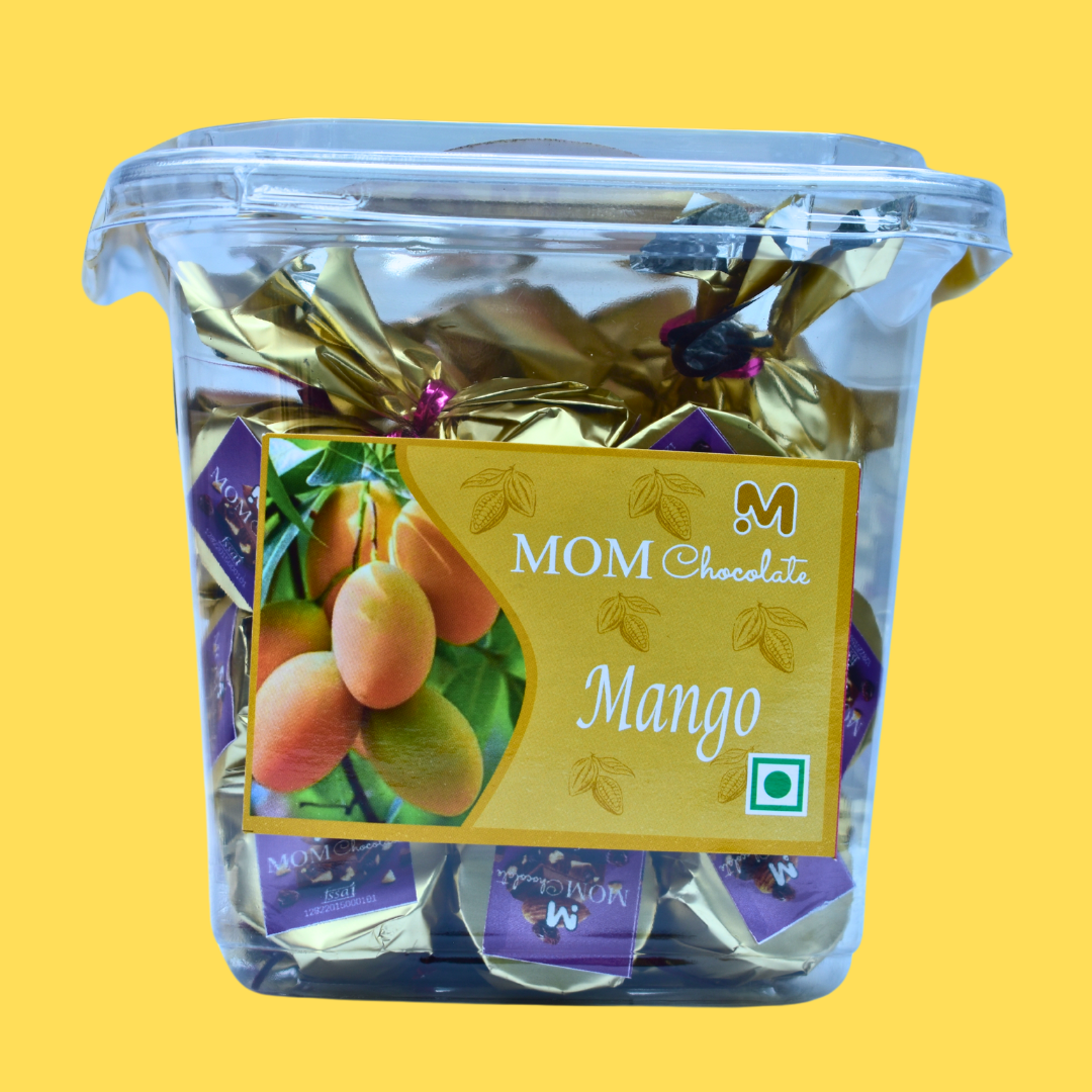 Experience the true taste of mango in every bite! Our Luxury Mango Jar is filled with 30 mini chocolates, each lovingly loaded with real dried mango pieces and enrobed in smooth, velvety chocolate.