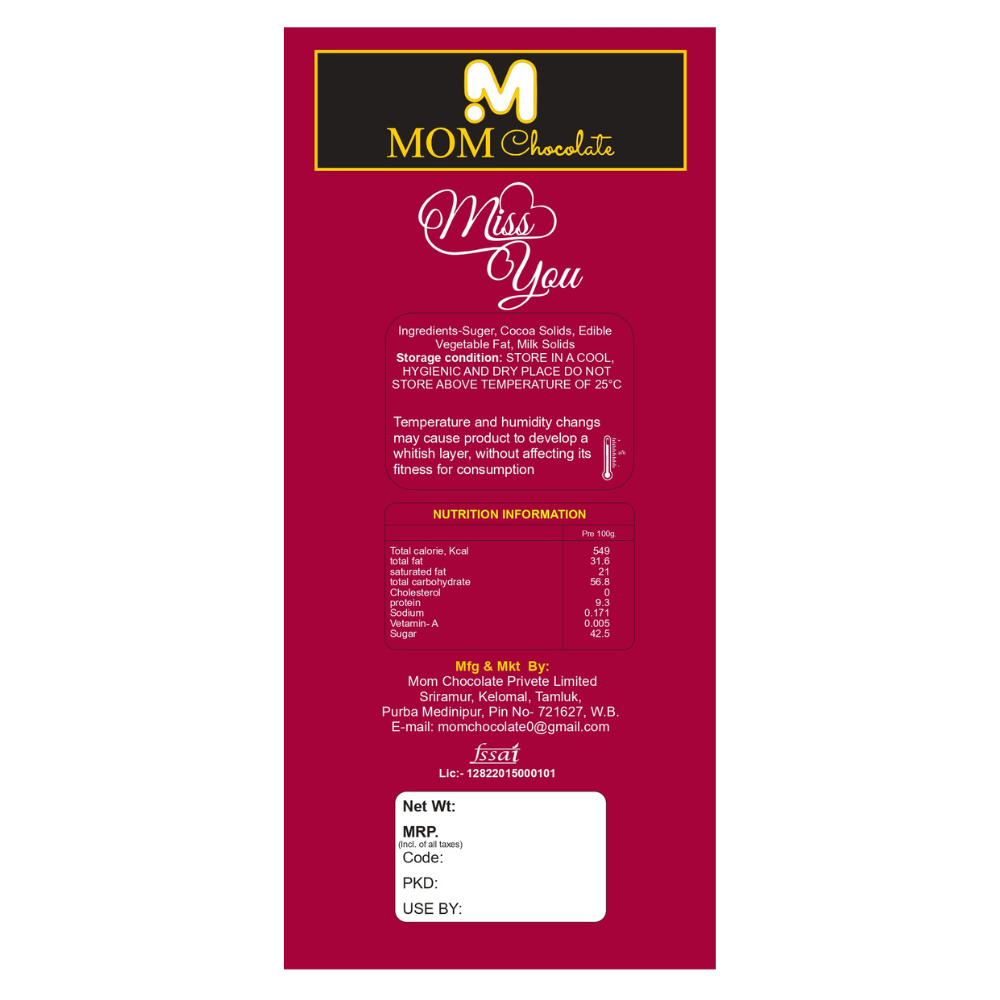 Some feelings are too deep for words — and that’s where MOM Chocolate’s Miss You Bar steps in. With a sweet surprise “Love You” message hidden inside, this 50g chocolate bar is more than just a treat — it’s a heartfelt emotion, wrapped in a beautiful red box of love. 🎁💌